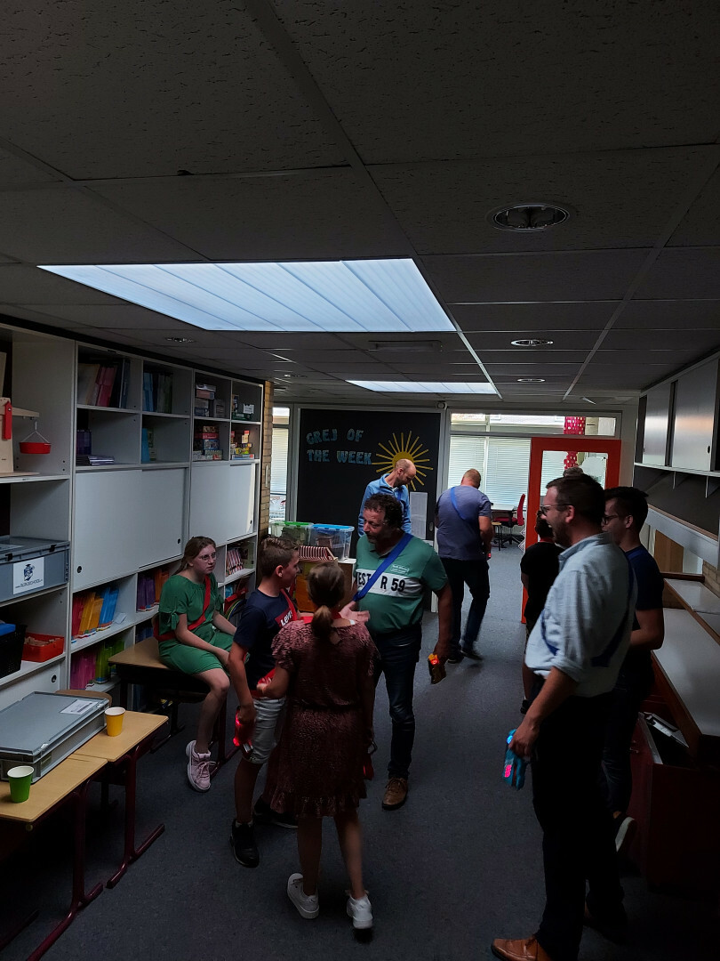 Vrijdag was het een erg gezellige dag. Veel ouders, opa's, oma's, oud-leerlingen en (oud)personeelsleden bezochten de school. Fijn om de contacten zo weer aan te kunnen halen, herinneringen te kunnen delen. Veel mensen waren ook afgekomen de de inschrijfkaarten. Het bericht op Facebook heeft meer dan 4000 mensen bereikt! Hartverwarmend om zo te merken dat de school een warme plek heeft in veel harten. De boodschappenmand is gewonnen door A. Melissant.