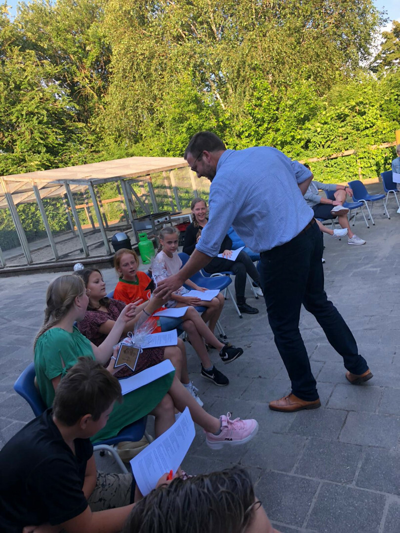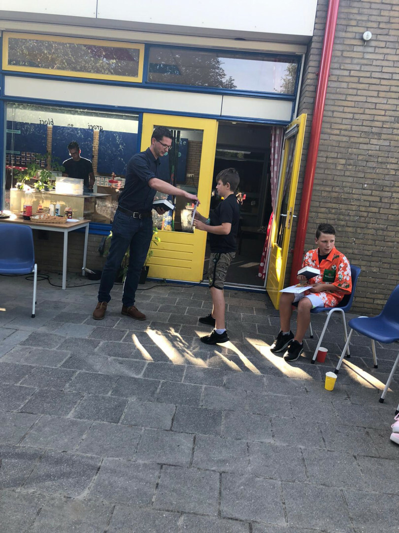 Gisteren hebben we afscheid genomen van groep 8 op een informele manier, buiten met een barbecue. 's Middags hebben de leerlingen van groep 8 en de meesters en juffen gelasergamed in de school... 's avonds werd dat nog dunnetjes overgedaan door de leerlingen met vaders en moeders. De bijbels en getuigschriften werden overhandigd door de voorzitter van de Adviesraad. We wensen de leerlingen alle goed op hun verdere levensweg en we zijn dankbaar voor de periode die we met elkaar mochten optrekken.